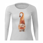 Pohodlné bavlnené dámske tričko Vianočný škriatok medený s dlhým rukávom