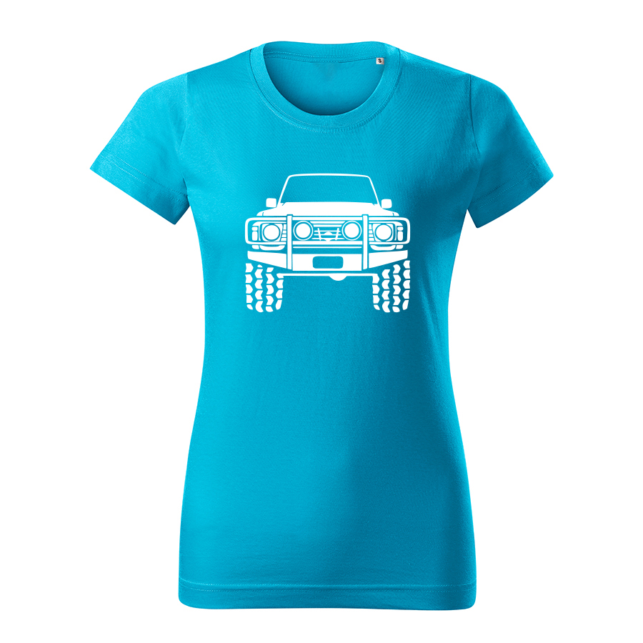 nissan patrol front damske tricko biela tyrkysova