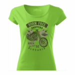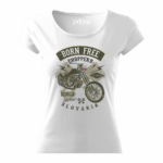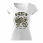 Pohodlné bavlnené dámske tričko „Chooper born free Slovakia“ s rukávmi kratšej dĺžky. Vypasovaný strih s bočnými švami perfektne zvýrazní Vašu ženskosť.