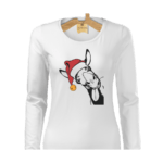 Pohodlné bavlnené dámske tričko Santa kôň zľava s dlhým rukávom