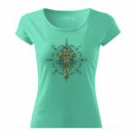 Pohodlné bavlnené dámske tričko „Kríž 2“ s rukávmi kratšej dĺžky. Vypasovaný strih s bočnými švami perfektne zvýrazní Vašu ženskosť.