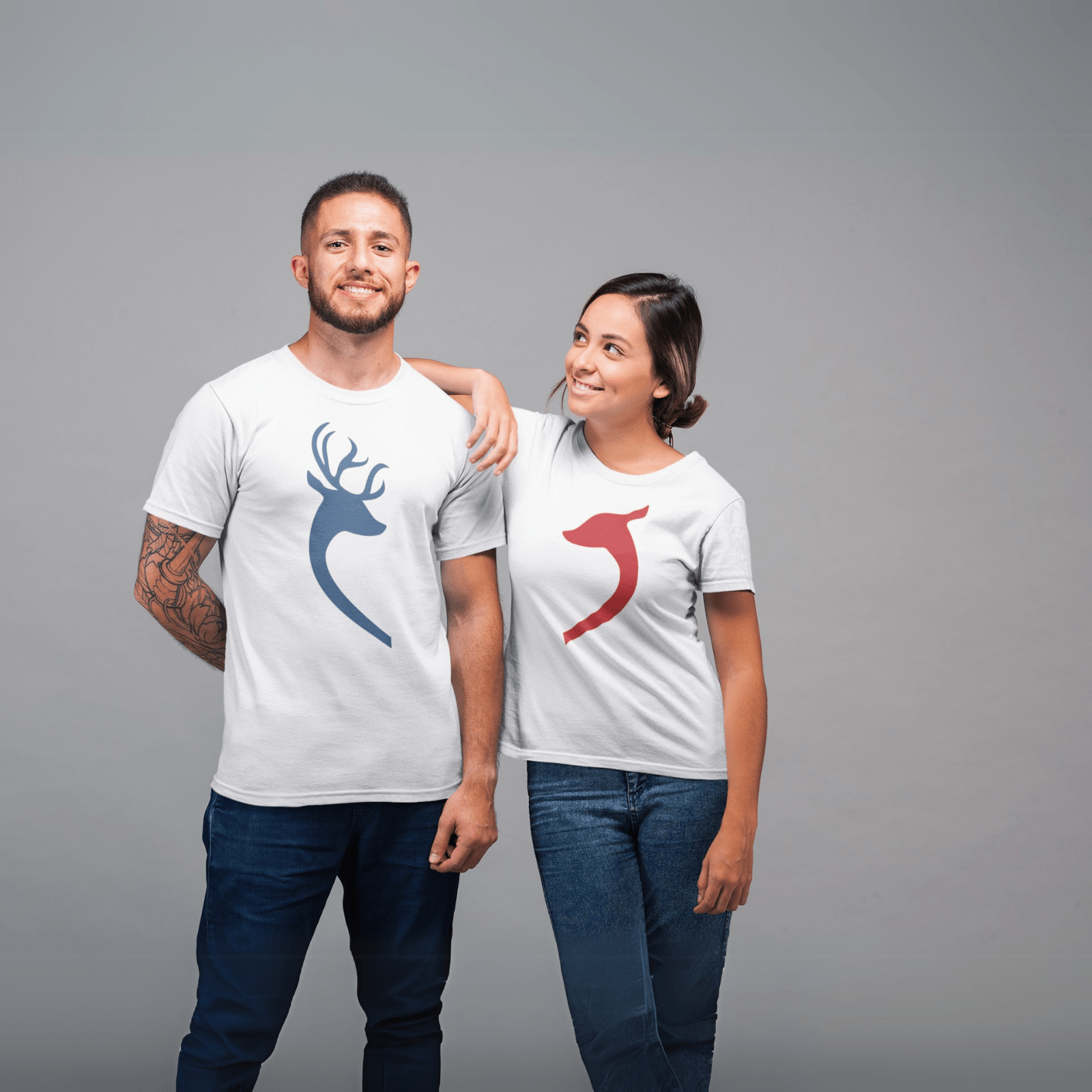 Vianočné tričká pre páry Jelene v tvare srdca