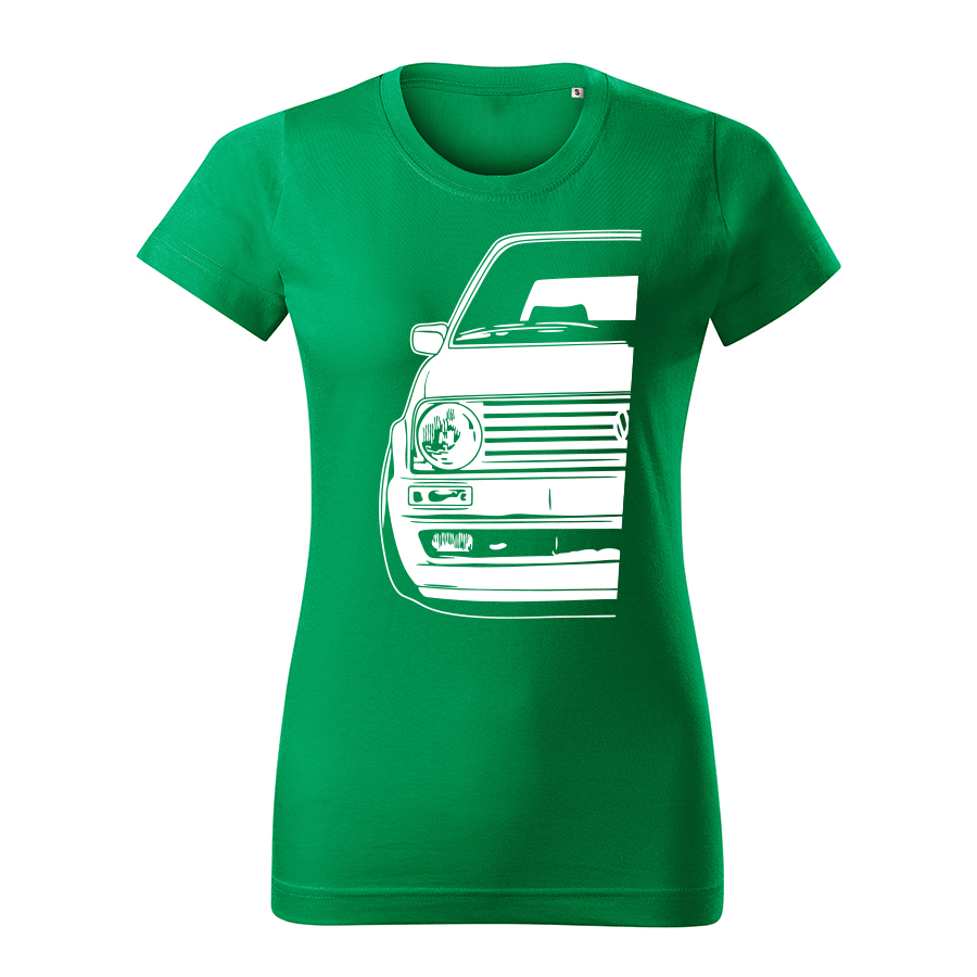 volkswagen golf mk2 gti half damske tricko biela travova zelena