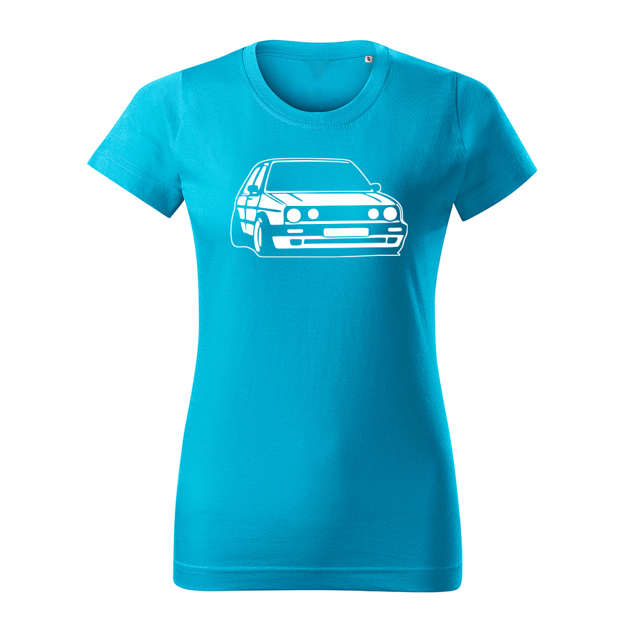 volkswagen golf mk2 low damske tricko biela tyrkysova
